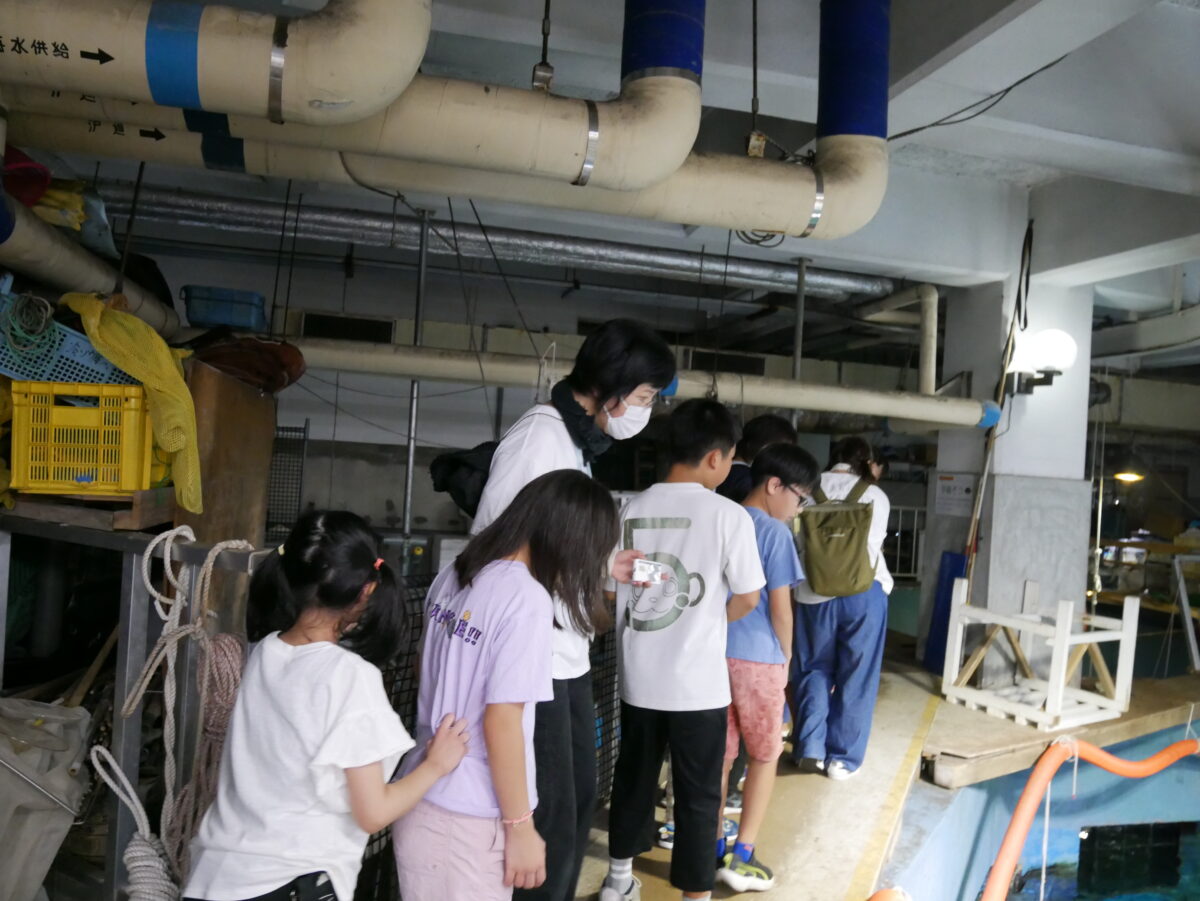 9月18日(木)スクールバスに乗って、自然博物館に行きました。何度も行かせていただいているのですが、今回初めて、学芸員の方にガイドツアー(バックヤードの見学)をしてもらいました。裏側の階段を上り、一番大きな水槽を上から見せてもらったり、魚たちの餌が入っているマイナス20度の冷凍庫に少しだけ入らせてもらったりと、普段はできない貴重な経験をさせてもらいました。児童たちは「すごいな!」「初めて見た!」等と大興奮でした。学校に帰ってきてからも、「カニ、かわいかった」「エイが大きかった」「サメがかっこよかった」と楽しそうに話す姿がほほえましかったです。