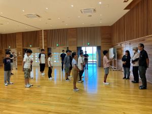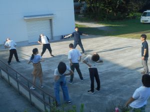 二日目、さわやかな朝の空気をたくさん吸って、ラジオ体操でスタート。