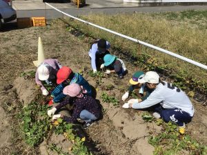 ホーム 学校生活 いもほりに行きました! 2025.10.10 小学部 いもほりに行きました! サツマイモ、いっぱい!! 今年度もいもほり大会を行いました。学校近くの農園に、交通安全に気を付けながら歩いていきました。縦割りの3チームに分かれ、高学年の児童が下の学年の児童に教えながら、いもほりをがんばりました。土の中からいもが見えてくると、子どもたちからは大歓声があがりました!掘り上げたいもを持って「ほれたよー」「おおきいなー」と、とてもうれしそうな表情でした!掘れたいもは、少しずつ各家庭に持ち帰り、残りは給食のメニューとなってみんなの前に登場します♡