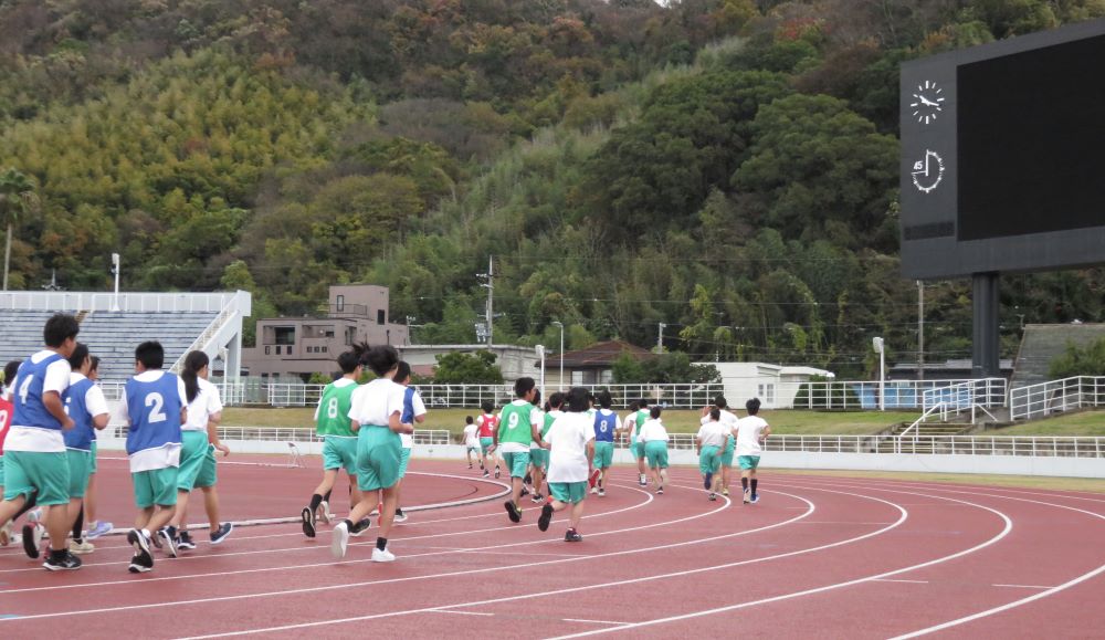 ホーム 学校生活 令和7年度マラソン大会 2025.12.09 年間行事 令和7年度マラソン大会 12月5日(金)は、朝から雨が降り心配しましたが、無事に紀三井寺陸上競技場でマラソン大会を開催することができました。 自分の目標を決め、これまでそれぞれのペースで練習をがんばってきた児童生徒たち。マラソン大会当日は、応援してくれる保護者の方や仲間の声援を受け、自分たちの力を精いっぱい出し切りました。また一つ、成長することができました。