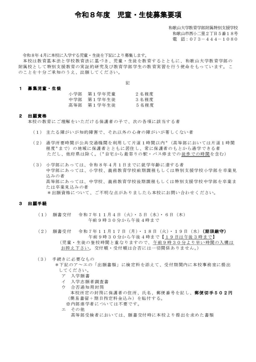 令和8年度 児童・生徒募集について、下記のとおり公示します。